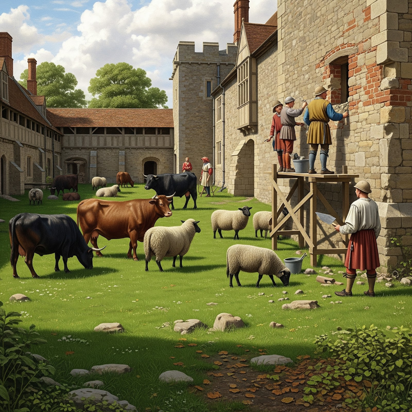 Late medieval stock is grazing within the bailey.