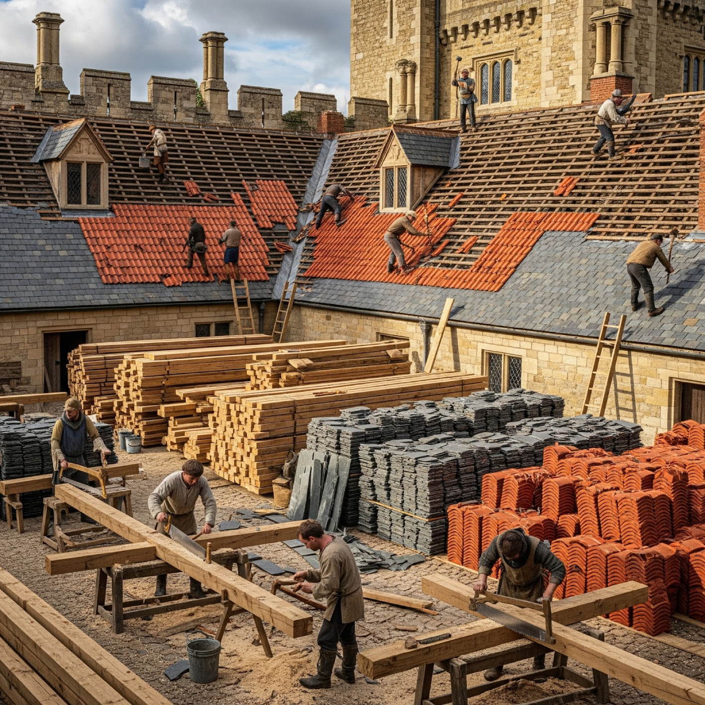 Timber, tiles and slates purchased for repairs at Oakham and Rockingham castles.