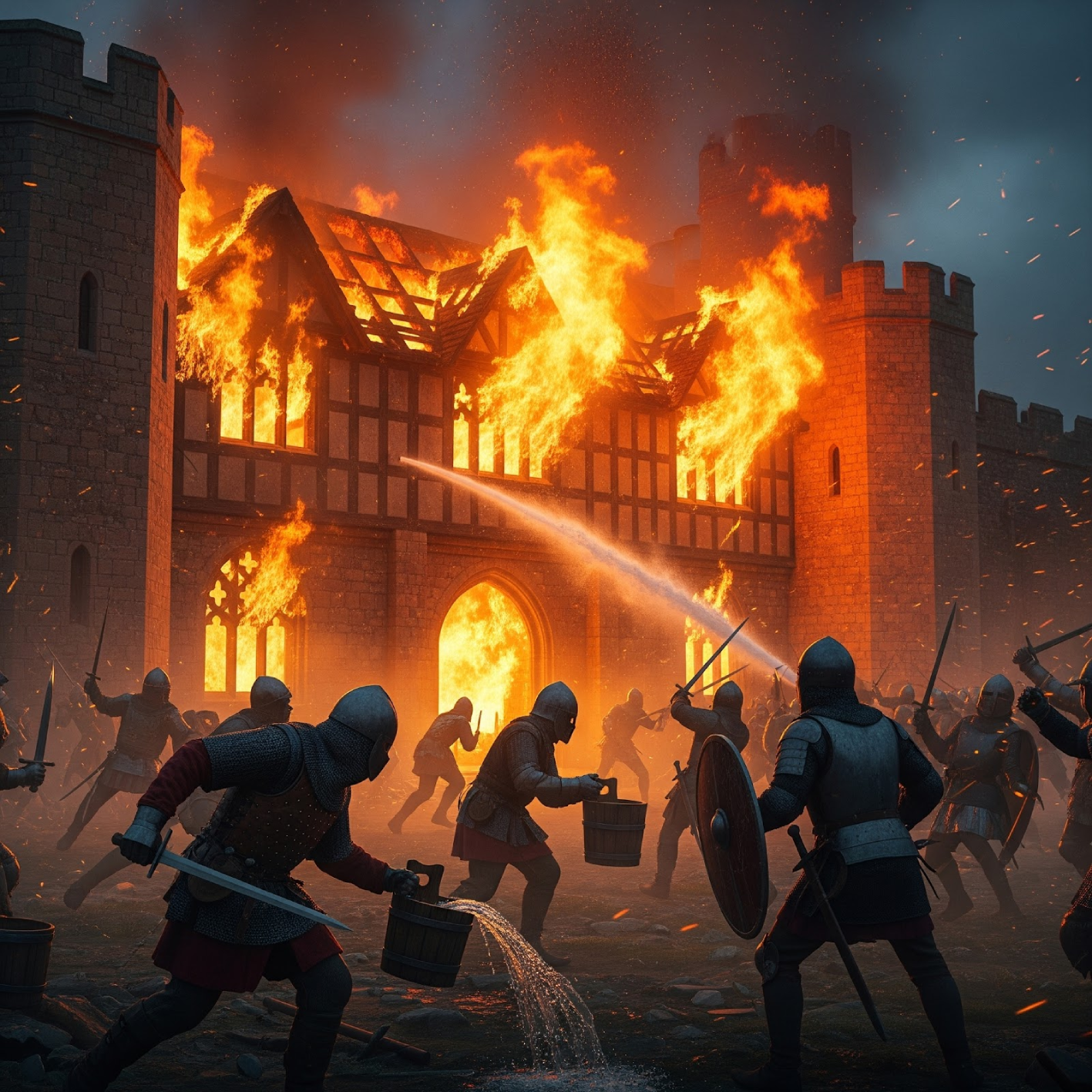 The Great Hall is damaged by fire